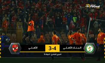 وتغلب البنك الأهلي على الأهلي بأربعة أهداف مقابل ثلاثة ضمن منافسات الجولة 15 من مسابقة الدوري.