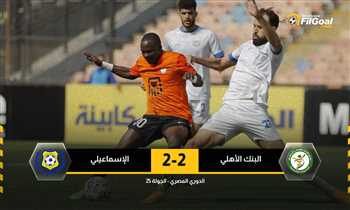 وخطف الإسماعيلي التعادل أمام البنك الأهلي في الوقت القاتل لتنتهي المباراة 2-2 ضمن منافسات الجولة 25 من مسابقة الدوري.