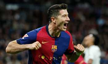 سجل رباعية برشلونة روبرت ليفاندوفسكي "هدفين" ولامين يامال ورافينيا.