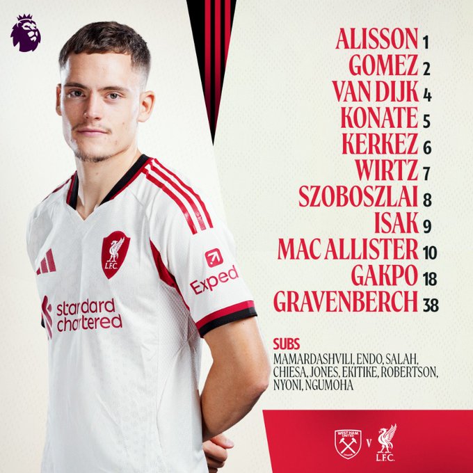 تشكيل ليفربول - صلاح على مقاعد البدلاء.. وعودة أليسون وفيرتز أمام وست هام