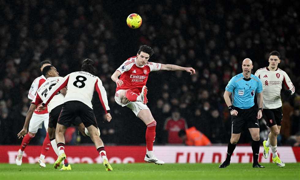 فيما بدأ ديكلان رايس في وسط أرسنال ولياندرو تروسارد في مركز الجناح الأيسر وبوكايو ساكا الجناح الأيمن.