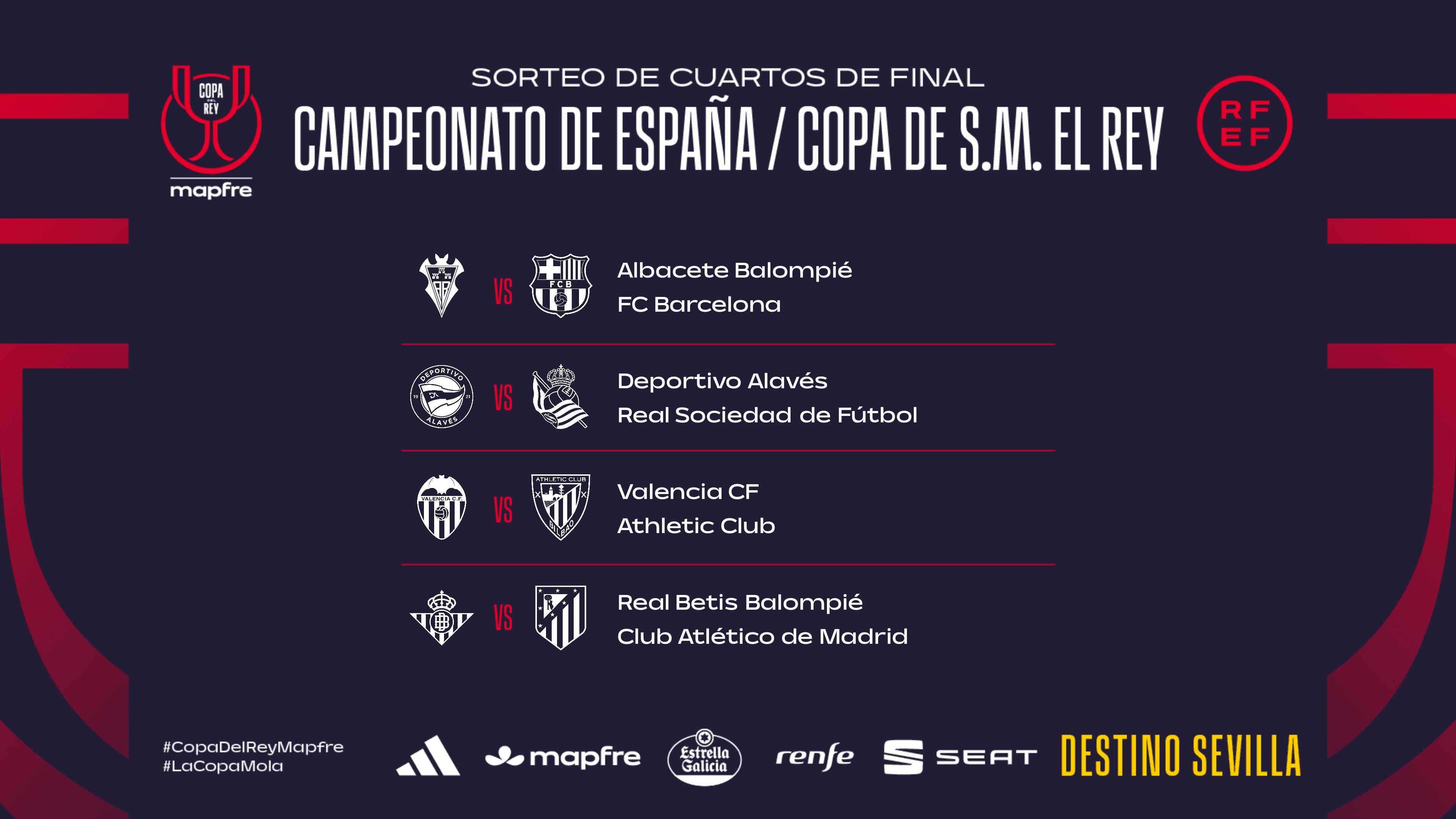 وجاءت نتائج قرعة ربع نهائي كأس ملك إسبانيا على النحو التالي: