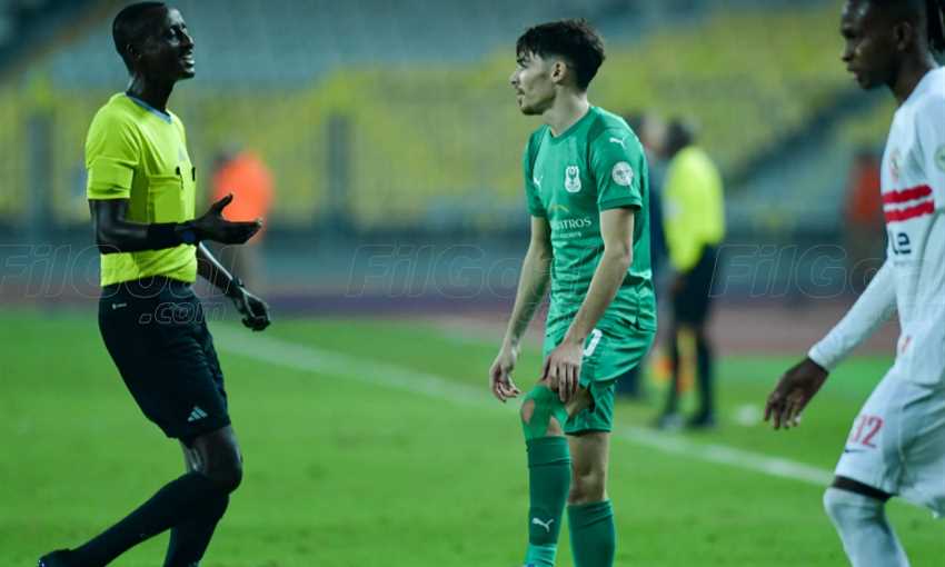 وحصل حسن علي لاعب المصري على بطاقة صفراء في الدقيقة 18 بعد تدخل قوي على جوان بيزيرا.