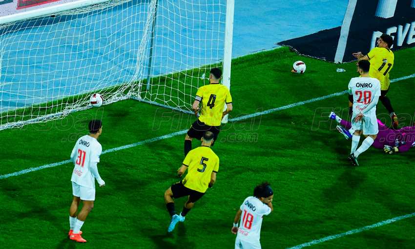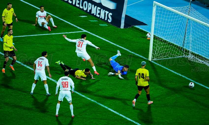 وباغت إسلام عبد النعيم دفاعات الزمالك في الدقيقة 29 بتسديدة قوية لكن أعلى العارضة.