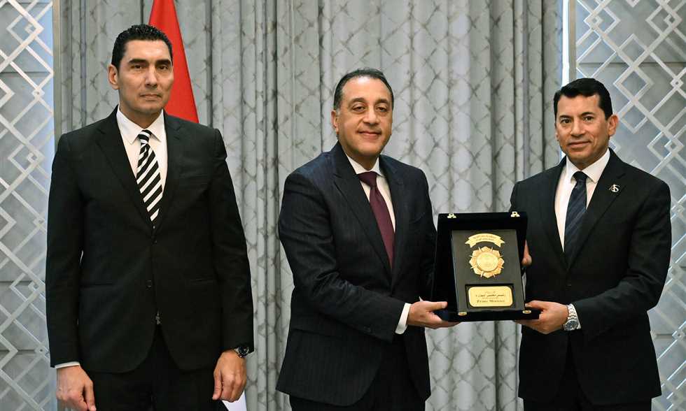 كرّم مصطفى مدبولي رئيس الوزراء المصري، أشرف صبحي وزير الشباب والرياضة السابق في حضور جوهر نبيل الوزير الحالي.