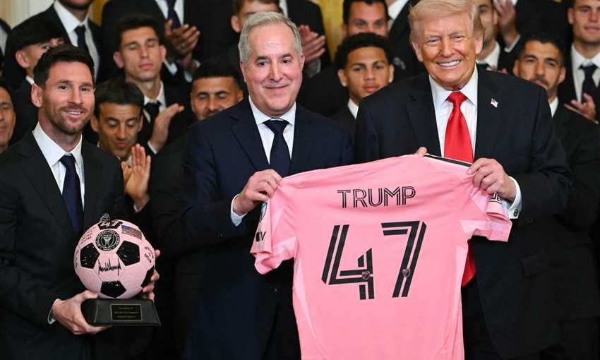 التقى دونالد ترامب رئيس الولايات المتحدة الأمريكية بـ ليونيل ميسي قائد إنتر ميامي وخورخي ماس مالك النادي وخافيير ماسكيرانو المدير الفني وجميع لاعبي الفريق للاحتفال بتتويج إنتر ميامي بلقب الدوري الأمريكي 2025.