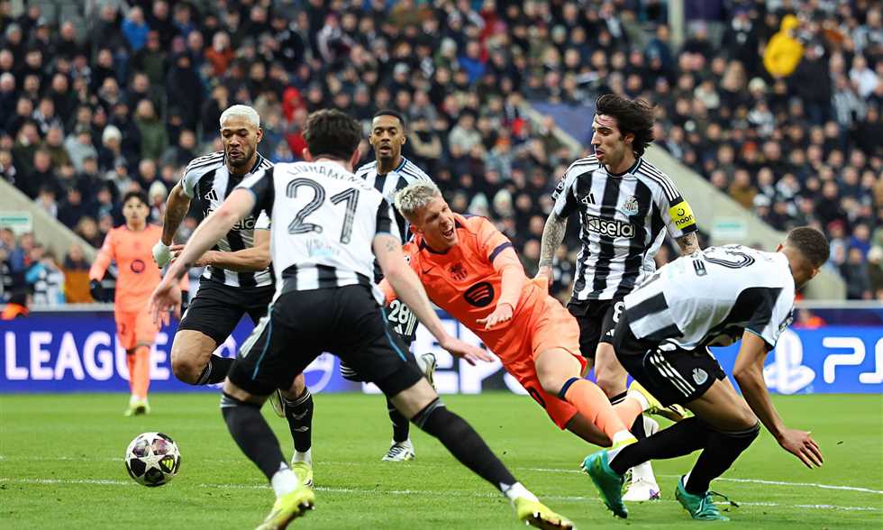 وتعادل نيوكاسل وبرشلونة بهدف لكل فريق في ذهاب دور الـ16 من دوري أبطال أوروبا.