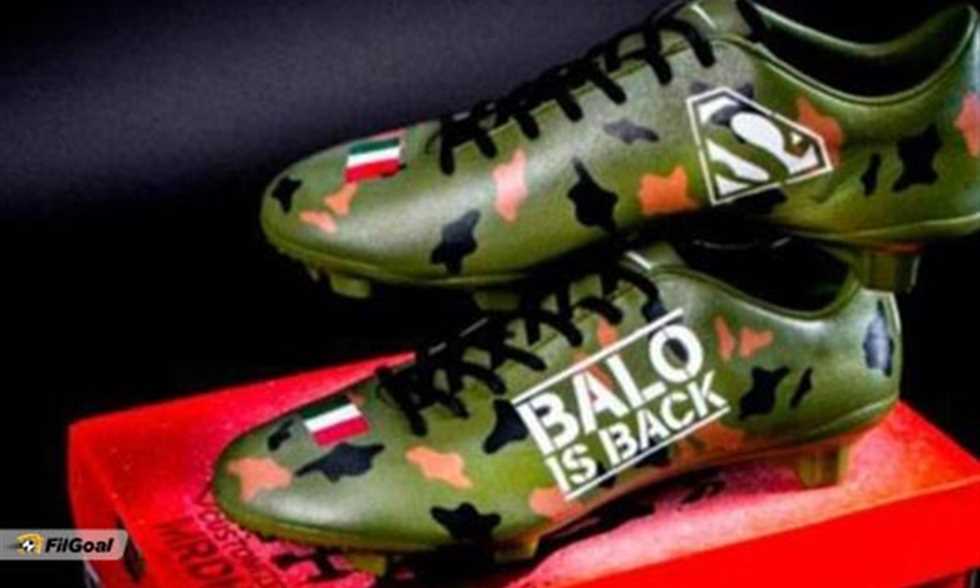 وكتب على حذاء بالوتيلي الجديد "بالو عاد" وحمل رقمه المفضل 45، وعليه لوجو "سوبر ماريو".