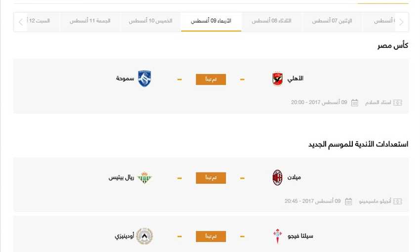 مواعيد مباريات الأربعاء - الأهلي ضد سموحة.. وكوكا يبدأ الموسم المحلي