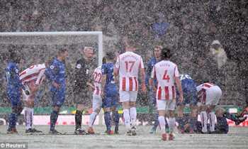 الثلوج تغطي ملعب المباراة.