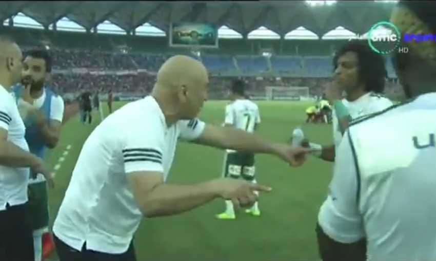 حسام حسن يستغل فترة علاج أحمد جمعة ويلقي التعليمات للاعبي المصري.