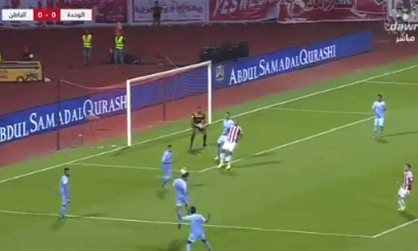 تمريرة عرضية من رومولو أوتيرو لاعب الوحدة ولكن تغطية من دفاع الباطن أبعد الكرة ببراعة عن منطقة الخطر.