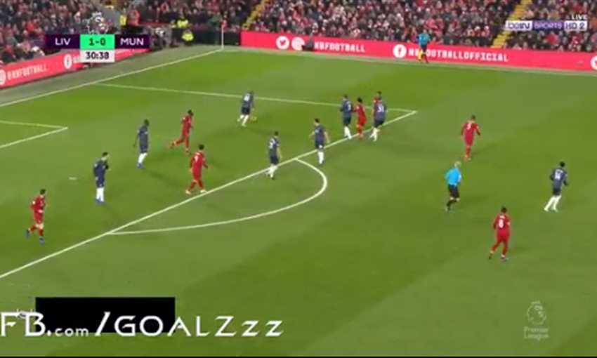 الخطورة مستمرة بشكل رهيب لليفربول، ركلة ركنية على يسار مرمى اليونايتد نفذت عرضية متقنة إلى داخل منطقة الجزاء حيث استقبلها روبيرتو فيرمينو برأسية وضعت الكرة في طريقها للشباك لولا التمركز الجيد للمدافع إريك بايلي والذي مكنه من إبعاد الكرة من على خط المرمى تماما.