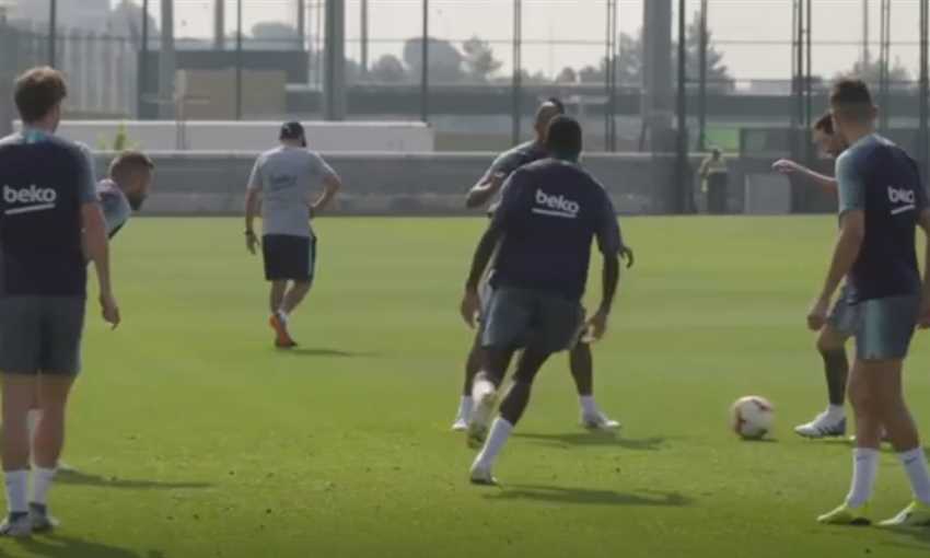 تمريرات مستمرة من لاعبي برشلونة بعرض الملعب في منتصف ملعب فريق ريال سوسيداد.