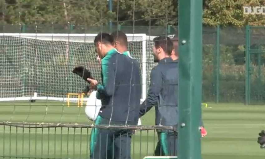 عمليات الإحماء الأخيرة لفريق توتنام قبل بداية اللقاء.