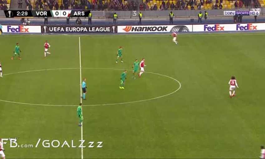 تسديدة من آرون رامسي للركلة الحرة المباشرة، مرت أعلى العارضة للحارس بوجدان شوست وتحولت ركلة مرمى.