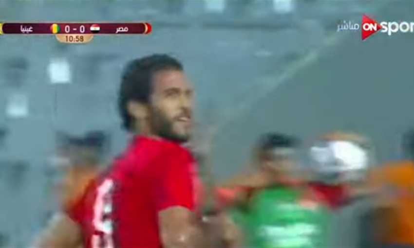 عرضية رائعة من محمد ياتارا من الجهة اليسرى حولها باهر المحمدي برأسية قوية من داخل منطقة الجزاء في أسفل يسار المرمى لكن تألق محمد الشناوي وأبعد الكرة ببراعة، رأسية باهر المحمدي جائت أفضل من رأسيات ومحاولات مهاجمي منتخب غينيا منذ بداية اللقاء.😅😅
