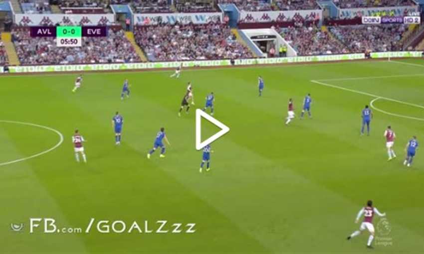 محاولة تمرير كرة عالية إلى ويسلي المتجه نحو مرمى إيفرتون، لكن الكرة كانت بعيدة عليه ووصلت إلى أحضان حارس المرمى.