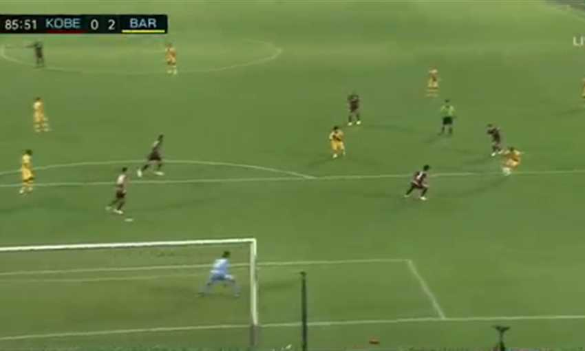 ركلة حرة مباشرة لبرشلونة بالقرب من حدود منطقة الجزاء في مواجهة المرمى، نفذها أليكس كولادو بتمريرة طولية في عمق منطقة الجزاء تمكن دانكلير بيريرا مدافع فيسيل كوبي من إبعادها في الوقت المناسب تماما قبل أقدام سيرخيو بوسكيتس المواجه تماما للمرمى دون أي رقابة دفاعية.