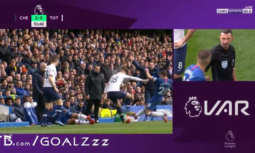 تسلل على ويليان لاعب تشيلسي نتيجة تمركز خاطئ خلف مدافعي توتنام هوتسبر.