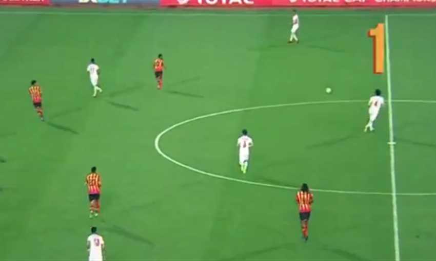 تنفيذ الركلة الحرة المباشرة للترجي عن طريق عبدالرؤوف بن غيث بتمريرة عرضية إلى داخل منطقة الجزاء مرت من جميع لاعبي الفريقين دون أي خطورة على المرمى قبل أن تتحول بالنهاية إلى ركلة مرمى لصالح الزمالك.