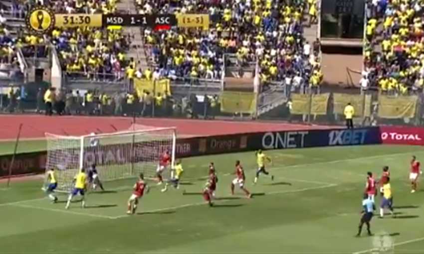 كرة عرضية من الطرف الأيسر لصالح صاندوانز عن طريق ليبوسا الظهير الأيسر شتتها دفاع الأهلي بنجاح.