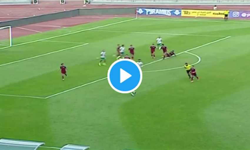 ركلة حرة لصالخ فريق المصري في منتصف ملعبهم الدفاعي بعد إعاقة من جون أنتوي لعبد الرحمن زين.
