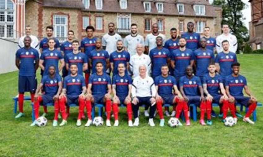 تمريرات قصيرة بين لاعبي منتخب فرنسا في منتصف الملعب.