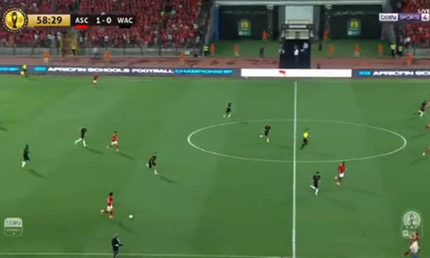 كرة مقوسة إلى داخل منطقة الجزاء لصالح فريق الأهلي عن طريق علي معلول من ركلة حرة شتتها الدفاع بنجاح.