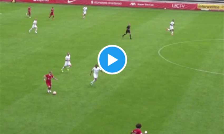 تمريرات قصيرة بين لاعبي ليفربول في منتصف الملعب.