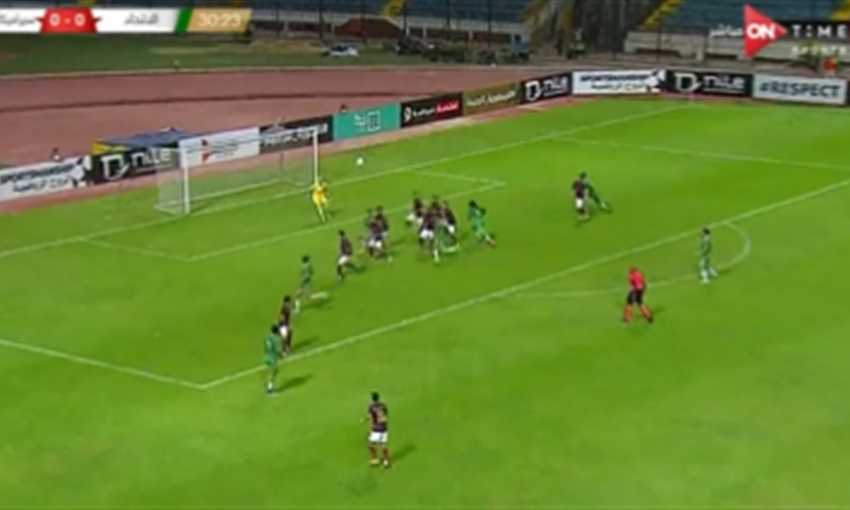 محمود نبيل سدد الكرة من خارج منطقة الجزاء وتصدى لها دفاع الاتحاد قبل وصولها للمرمى.