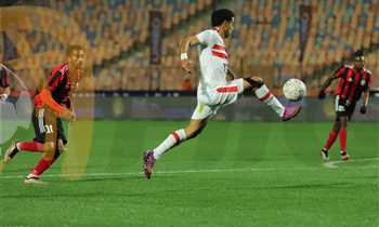 تصويبة من خارج منطقة الجزاء لصالح الزمالك عن طريق دونجا لكنها بعيدة للغاية عن المرمى.