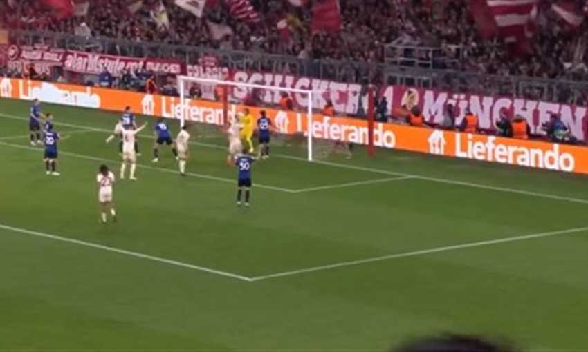 اندفع هاري كين لاعب بايرن ميونيخ إلى داخل منطقة الجزاء ليلتحق بتمريرة، وسدد الكرة بقوة، لكنها ارتطمت مباشرة بالقائم الأيمن.
