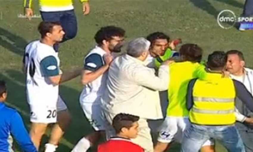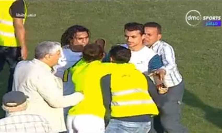 اعتدى عمرو مرعي مهاجم فريق إنبي وصلاح سليمان مدافع الفريق، على أحد المصورين بعد نهاية لقاء الفريق البترولي أمام طنطا.