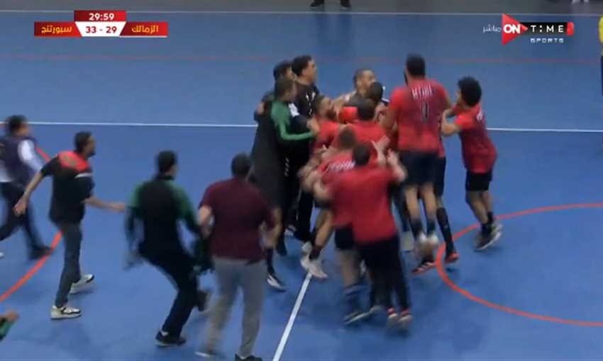 اللحظات الأخيرة من فوز سبورتنج على الزمالك بنهائي كأس مصر لليد