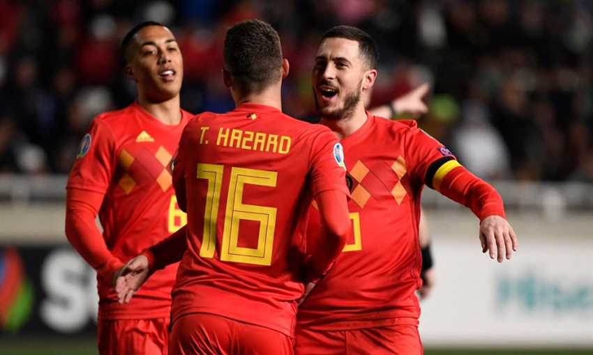 بالفيديو – احتفال مثالي بالمئوية.. هازارد يقود بلجيكا لتخطي قبرص
